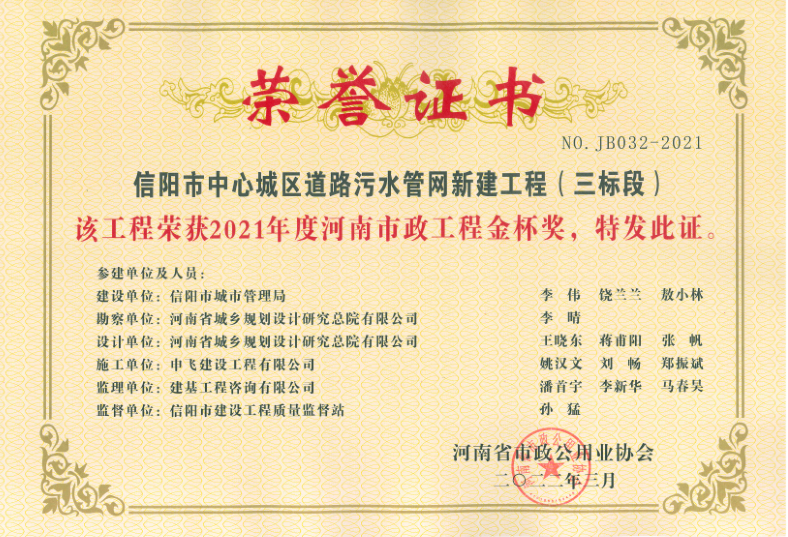 - [04-12]申飛建工再獲“省先進(jìn)施工企業(yè)”、 “市政金杯獎(jiǎng)”等多項(xiàng)榮譽(yù)